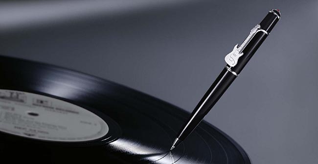 卡地亞以熱情的搖滾樂歡慶DIABOLO DECARTIER書寫筆10周歲生日。黑色復(fù)合材質(zhì)制作的書寫筆,優(yōu)雅的純黑流線型筆身,散發(fā)鉑金色澤的吉他造型筆帽,猶如聚光燈下萬眾矚目的巨星。