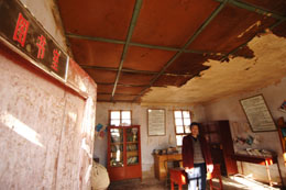 1月8日,青海省化隆回族自治縣扎巴鎮(zhèn)中心學(xué)校的一名教師在向記者介紹該校破爛不堪的校圖書室。 中小學(xué)圖書室建設(shè)對于偏遠(yuǎn)落后的西部地區(qū)具有重要而深遠(yuǎn)的意義,在滿足當(dāng)?shù)刂行W(xué)生知識信息需求方面發(fā)揮著積極、有效的作用。然而,記者在青海省化隆、循化等縣調(diào)查發(fā)現(xiàn),大多數(shù)中小學(xué)根本沒有圖書室,個別有圖書室的學(xué)校圖書室藏書大多是20世紀(jì)50至70年代的老書和一些“科學(xué)養(yǎng)殖”一類的受贈圖書。記者在青海省化隆回族自治縣了解到,當(dāng)?shù)赜?80所中小學(xué)校,有圖書室的只有十幾所,圖書室藏書總共3萬多本,在這個擁有48000多名義務(wù)階段中小學(xué)生的縣城,學(xué)生人均擁有課外圖書連一本都不到。 |