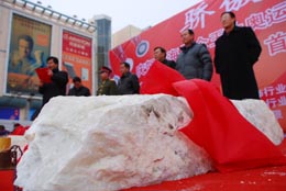 北京2008奧運(yùn)會(huì)金、銀牌玉料啟運(yùn)儀式1月22日在青海格爾木市昆侖花園廣場(chǎng)舉行。本報(bào)記者:楊壽德