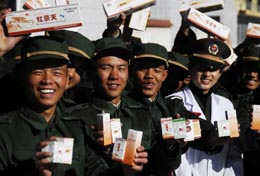 1月19日,武警拉薩支隊(duì)新戰(zhàn)士拿到高原特殊藥品。