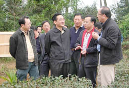 財政部副部長、國務院海南農(nóng)墾管理體制改革工作小組組長廖曉軍(左二)考察海南農(nóng)墾(左一為海南農(nóng)墾總局局長王一新)。楊平昌 攝