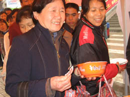 福建省漳州市總工會(huì)、中國移動(dòng)漳州分公司近日在漳州火車站為因天氣影響滯留的旅客和外來工送上御寒棉衣、棉被、方便面,同時(shí)為旅客提供免費(fèi)電話等服務(wù)。圖為滯留人員有秩序領(lǐng)取方便面。