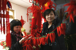 2月4日,立春節(jié)飾品市場,火紅的辣椒讓人愛不釋手。4日立春,天津節(jié)日市場紅紅火火,人們購買各種吉祥飾品裝點生活,祈盼新一年事事如意、健康平安。