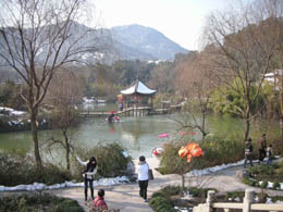 2月14日正值農(nóng)歷正月初八,素有“十里梅花香雪!敝Q(chēng)的杭州余杭超山風(fēng)景區(qū)鑼鼓震天。一年一度的“超山梅花節(jié)”在這里拉開(kāi)了帷幕。 超山為江南三大賞梅勝地之一,超山梅花尤以“古、廣、奇”三絕而聞名于世,素有“十里梅花香雪海”之美譽(yù)。初春二月,花蕾綻放,方圓十里遙天映白如飛雪漫空,甚是壯觀。已故金石書(shū)畫(huà)大師吳昌碩生前酷愛(ài)超山梅花,曾留下“十年不到香雪海,梅花憶我我憶梅,何時(shí)買(mǎi)棹冒雪去,便向花前傾一杯”的千古佳句,并選擇身后與超山梅花相伴。至今,這里仍保留有吳昌碩墓和紀(jì)念館! 據(jù)杭州市余杭區(qū)旅游局工作人員介紹,今年,由于氣候適宜,梅花花蕾茂密,2月初陸續(xù)開(kāi)始盛放,元宵節(jié)前后將最為旺盛,可持續(xù)到3月上旬。主辦方在梅花節(jié)期間還推出了“‘梅花憶我我憶梅’詩(shī)詞楹聯(lián)民歌征文”“我的名字叫‘梅花’”“賞超山梅花迎北京奧運(yùn)”等豐富多彩的互動(dòng)活動(dòng)。梅花節(jié)期間,邀三兩好友或攜家?guī)Э诘匠脚菀粔鼐G茶、賞十里梅海、登千級(jí)石階將別有一番情趣。