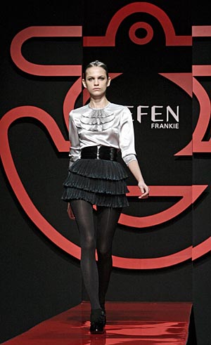 2月24日,來自中國的時(shí)裝品牌“吉芬(JEFEN)”在巴黎盧浮宮發(fā)布2008/2009秋冬時(shí)裝新作。這是該品牌第四次在世界時(shí)裝之都巴黎舉行新品發(fā)布會(huì)。圖為模特在演繹“吉芬”品牌設(shè)計(jì)師謝鋒的時(shí)裝新品。