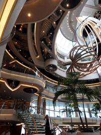 2月20日,美國皇家加勒比郵輪公司屬下的巴哈馬籍超大型豪華郵輪“海洋迎風(fēng)”號駛抵中國熱帶濱海旅游城市三亞。圖為“海洋迎風(fēng)”號郵輪的大堂。