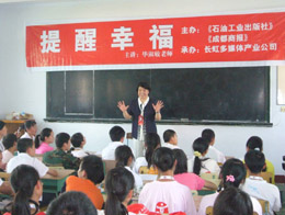 由于初中課本中收錄了畢淑敏的《提醒幸!芬晃,所以畢淑敏特意為學(xué)生們講解了《提醒幸!愤@篇文章,并以此為引子,對學(xué)生們做心理輔導(dǎo)。她用“為什么要提醒幸!遍_頭,把心中這個秘密講給學(xué)生聽。人生、世界是畢淑敏在課堂上的兩個主題,她生動的講解似乎帶著同學(xué)們走出了北川,走進了外面的大千世界。