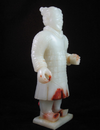 2008年10月,兩件海外回流文物將由北京中嘉國際拍賣公司公開拍賣,一件是戰(zhàn)國和田玉武士俑,另一件是戰(zhàn)國和田玉劍。 在傳世古玉器中,用新疆和田籽玉琢制而成的藝術(shù)品尤其珍貴。將要拍賣的戰(zhàn)國秦武士俑高23厘米,選用上等和田籽玉,玉質(zhì)如羊脂般潔白細膩。俑身下部帶有朱砂紅泌、衣甲邊延有非常珍貴的只有和田籽玉才有的棗皮紅。人物莊重、肅穆的表情,體現(xiàn)了武士的威嚴和恭敬,且形象生動,服飾衣甲、發(fā)式均真實具體,人物臉部輪廓及紋飾線條極為流暢自然,傳神、生動,極具藝術(shù)魅力,體現(xiàn)了戰(zhàn)國時代琢玉藝人高超的工藝和非凡的藝術(shù)想象力。 另一件戰(zhàn)國和田玉劍為新疆和田籽料琢制,長49.8厘米,由劍首、劍莖、劍格、劍身所組成,劍首為扁圓餅狀,帶有少量朱砂紅泌,裝飾紋分為內(nèi)外兩部分,外部為一圈柿蒂紋圍繞,內(nèi)部為隆起的一朵菱花紋,線條流暢而有動感,莖部為螺旋紋,工藝要求精度極高,劍格浮雕饕餮紋,紋飾精美,是典型戰(zhàn)國中、晚期風(fēng)格,為戰(zhàn)國時楚國的形制。其工藝之精巧,劍形之美,紋飾之細膩,用料之考究。 北京市文物局副研究員、鑒定專家史潤梅認為,這兩件戰(zhàn)國玉器,用料為新疆和田籽玉,溫潤潔白,如羊脂,工藝水平非常高超,用現(xiàn)代工具都達不到,玉俑面部輪廓細膩、發(fā)絲清晰,衣紋鎧甲,飄逸整齊。玉劍形式規(guī)整,做工精致。為難得一見的精品玉器。 |