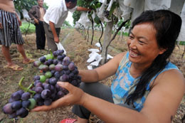 近兩年來,大包干發(fā)源地——安徽省鳳陽縣小崗村在縣有關(guān)專家的帶動下,通過土地整合,發(fā)展農(nóng)業(yè)特色經(jīng)濟(jì),開展葡萄、蔬菜、雙苞菇、苗木花卉等經(jīng)濟(jì)作物的推廣,僅葡萄種植達(dá)600畝,使每戶提高收入2000多元。