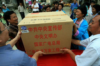 當(dāng)日,廣西融水縣紅水鄉(xiāng)舉行“電視進(jìn)萬家工程”彩電發(fā)放儀式,20戶貧困戶各領(lǐng)到一臺彩色電視機(jī),滿足了他們觀看奧運(yùn)會電視轉(zhuǎn)播的愿望。