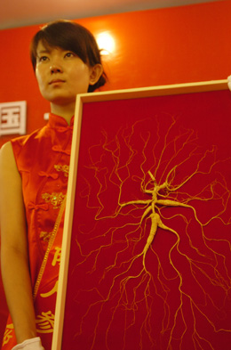 日前,在吉林省長(zhǎng)春市舉辦的2008中國(guó)·吉林國(guó)際人參大會(huì)“長(zhǎng)白山參王”拍賣會(huì)上,一棵有百年參齡的長(zhǎng)白山“野山參王”,以86萬(wàn)元高價(jià)拍賣成功,成為野山參的“王中之王”。 據(jù)負(fù)責(zé)本次拍賣會(huì)的吉林省宏大拍賣有限公司工作人員介紹,這棵人參于今年8月3日在長(zhǎng)白山腳下、蛟河漂河川附近出土,參齡達(dá)百年以上,鮮重85克,干重25克,且五形俱美,紋少而清晰,腿須呈人字完美展向四周,猶如“仙光四射”,故得名為“千手觀音”。 在拍賣會(huì)上,這棵“千手觀音野山參王”的起價(jià)最高,為30萬(wàn)元。在幾位買家的激烈競(jìng)拍下,價(jià)格節(jié)節(jié)攀升,最后以86萬(wàn)元高價(jià)競(jìng)拍成功。一位不愿透露姓名的買家介紹,野山參藥用價(jià)值極高且具備很高的收藏價(jià)值:“野山參是稀有物種,會(huì)越來(lái)越稀少,很珍貴,所以要買來(lái)收藏!边@位買家在拍賣會(huì)上以58萬(wàn)元也拍得一棵百年“野山參王”。 吉林長(zhǎng)白山參王拍賣會(huì)迄今已經(jīng)成功舉辦了三屆。長(zhǎng)白山區(qū)是中國(guó)乃至世界人參主產(chǎn)區(qū),產(chǎn)量分別占全國(guó)的80%和世界的70%,人參出口占世界出口量的60%以上。