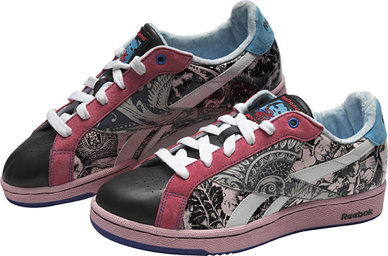 UK系列共有冰藍(lán)及炫粉兩款配色。版畫頭像鞋舌,凸顯個(gè)性;印花拼皮設(shè)計(jì),使得圖像更具層次感;彩色鞋帶孔,與整個(gè)鞋身相呼應(yīng)。 (資料照片) | |