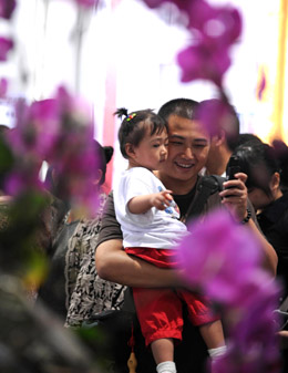 10月2日,花卉愛好者在重慶花博會上賞花。新華社記者:周衡義