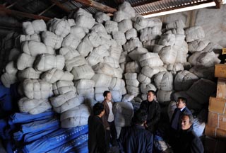 甘肅省隴南市文縣民政局倉庫中剛剛運來的棉衣。