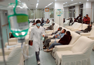 11月10日,部分疑似食物中毒的員工在嘉興市武警醫(yī)院內(nèi)輸液。