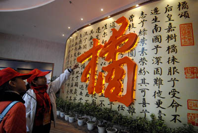 11月23日,浙江黃巖的小學(xué)生正在參觀中國(guó)柑橘博物館。當(dāng)日,作為第十屆中國(guó)·黃巖柑橘節(jié)的重頭戲--中國(guó)柑橘博物館在浙江省臺(tái)州市黃巖區(qū)落成。中國(guó)柑橘博物館是我國(guó)第一座以柑橘和橘文化為主題的大型專題博物館,占地面積25000平方米,建筑面積8000平方米。她將是中國(guó)最大的柑橘產(chǎn)業(yè)的文物史料、收藏、展示、保護(hù)、研究和教育中心,是中國(guó)柑橘文化的展示窗口。 |