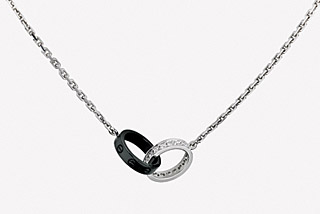 其中,今年全新升級的系列限量版項鏈,呈現(xiàn)出卡地亞獨具匠心的風(fēng)格和魅力。這款在圣誕節(jié)限量推出的作品,黑色陶瓷上雕刻有著名的螺絲標(biāo)志,與鑲嵌鉆石的18K白金金環(huán)絲絲相扣,渾然一體,和諧而甜蜜。(資料照片)