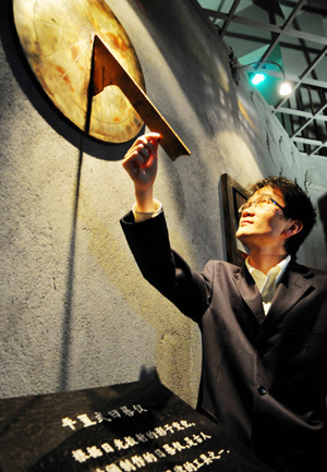 位于福建晉江的時間收藏館讓人們了解了時間的由來、時間的價值。該館共分為時間由來、時間產(chǎn)品、時間互動等主題展區(qū)。據(jù)介紹,目前時間收藏館共搜集了古今中外200多件各種與時間等有關(guān)的鐘具等。圖為觀眾在觀看古代判斷時間的仿制品。