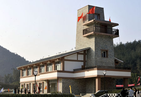 這是具有濃郁羌族風(fēng)格的文化站。 日前,北川羌族自治縣香泉鄉(xiāng)場鎮(zhèn)竣工并交付使用,結(jié)束了這個鄉(xiāng)長期沒有場鎮(zhèn)的歷史。這是四川地震災(zāi)區(qū)首個通過驗收并交付使用的異地重建項目。由山東省淄博市對口援建的香泉鄉(xiāng)場鎮(zhèn)共占地20.45公頃,按照“生態(tài)、產(chǎn)業(yè)、城建和諧”的理念分為市民廣場、衛(wèi)生院、文化站、廣播站、自來水廠、貿(mào)易市場和垃圾中轉(zhuǎn)站,總投資1330萬元。 |
