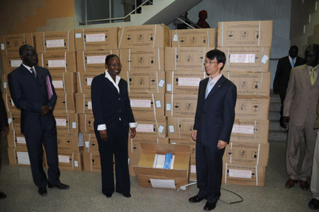 1月22日,中國駐塞內(nèi)加爾大使盧沙野(右)向塞內(nèi)加爾衛(wèi)生部部長蒂亞姆(Safiatou Thiam)在達(dá)喀爾轉(zhuǎn)交中國贈予塞內(nèi)加爾的抗瘧藥品。根據(jù)中塞兩國醫(yī)療合作協(xié)定,中國政府當(dāng)天向塞內(nèi)加爾政府贈送第二批價值200萬元人民幣的抗瘧藥品。2007年4月,中國已向塞內(nèi)加爾贈送了同等價值的抗瘧藥品。