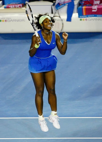 美國選手小威廉姆斯贏得澳網(wǎng)女單半決賽后激動(dòng)不已。
