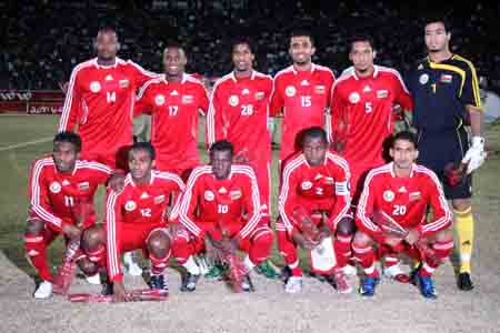 近日舉行的2011年亞洲杯預(yù)選賽B組比賽中,身著紅色球衣的阿曼隊(duì)以1比0戰(zhàn)勝科威特隊(duì)。 |
