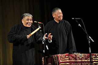 2月14日情人節(jié)晚上,當(dāng)記者來(lái)到位于天津市繁華商業(yè)街和平路與哈爾濱道交口上的中國(guó)大劇院小劇場(chǎng)門(mén)口采訪時(shí),驚訝地發(fā)現(xiàn)小劇場(chǎng)的走廊、舞臺(tái)側(cè)面和臨時(shí)座位上,都坐滿了人。臺(tái)上長(zhǎng)袍馬褂的演員們機(jī)智幽默,一舉手一投足,逗得臺(tái)下觀眾前仰后合,笑聲不斷,整個(gè)小劇場(chǎng)熱鬧非凡。 記者了解到,如今的天津相聲茶館也如同高檔影院、咖啡館等時(shí)髦消費(fèi)場(chǎng)所一樣,有了節(jié)日檔期,且越到節(jié)日,來(lái)聽(tīng)相聲的觀眾就越多。以往到了春節(jié),天津茶館的相聲演出都會(huì)停業(yè)休息,也就是行話的“封箱”。可是這幾年,天津的相聲市場(chǎng)日益火暴,茶館和相聲演員們也改變了多年的老傳統(tǒng),采取了春節(jié)連市,很多茶館還特意安排了下午的相聲專(zhuān)場(chǎng),有的觀眾從下午一直聽(tīng)到晚上。 “2008年的圣誕平安夜專(zhuān)場(chǎng),我們一直過(guò)了午夜12點(diǎn)才散場(chǎng),場(chǎng)面非常紅火,觀眾反復(fù)要求演員返場(chǎng)!敝袊(guó)大劇院小劇場(chǎng)經(jīng)理石磊笑著對(duì)記者說(shuō),“今年過(guò)年的時(shí)候更是忙壞了,從初一到十五,我們一天都沒(méi)休,一天要演出兩場(chǎng),下午晚上各一場(chǎng),一場(chǎng)兩個(gè)半小時(shí)。就這樣,120個(gè)座位仍舊滿足不了觀眾的需求,我們還特地多加了幾場(chǎng)相聲專(zhuān)場(chǎng)! 活躍在天津多個(gè)茶館的、三大相聲團(tuán)體之一的“天津哈哈笑藝術(shù)團(tuán)”團(tuán)長(zhǎng)宋勇告訴記者,相聲隊(duì)20多位演員如今平均每周都要演出十六七場(chǎng),今年春節(jié)期間又額外加了十場(chǎng),演完一場(chǎng)就要抓緊時(shí)間趕場(chǎng)去另一個(gè)茶館。石磊說(shuō):“今年剛過(guò)完年緊接著又是情人節(jié),我們情人節(jié)當(dāng)晚演到了11點(diǎn)半左右才散場(chǎng),段子也從平時(shí)的六對(duì)相聲、一段快板延長(zhǎng)到十多對(duì)相聲!
