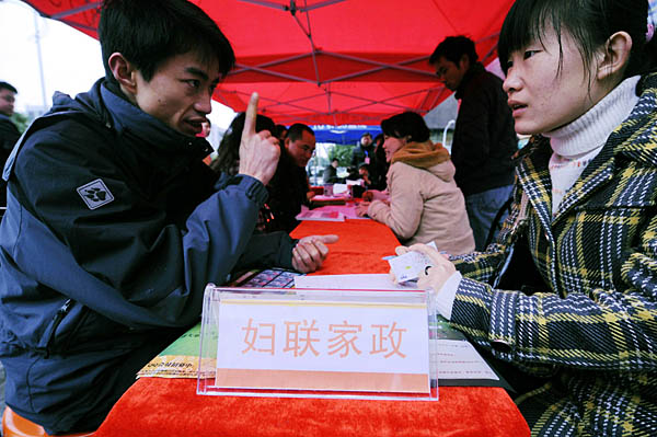 | 日前,長(zhǎng)沙市舉辦失業(yè)女性專場(chǎng)招聘會(huì)。這場(chǎng)名為“春風(fēng)送百崗·麗人暖真情”的女性專場(chǎng)招聘會(huì),共有10多家企業(yè)為失業(yè)女性提供了500個(gè)就業(yè)崗位。圖為應(yīng)聘者在長(zhǎng)沙失業(yè)女性專場(chǎng)招聘會(huì)上求職。 | |