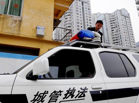 廈門市城市管理執(zhí)法局工作人員利用基于TD技術(shù)建成的噪音移動(dòng)監(jiān)控系統(tǒng)監(jiān)測(cè)噪音。