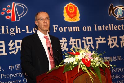 3月30日,世界知識產(chǎn)權(quán)組織總干事高銳博士在論壇開幕式上致辭。當(dāng)日,由世界知識產(chǎn)權(quán)組織和中國國家知識產(chǎn)權(quán)局、國家工商局、國家版權(quán)局等單位主辦的“世界知識產(chǎn)權(quán)組織跨區(qū)域知識產(chǎn)權(quán)高級論壇”在北京開幕。