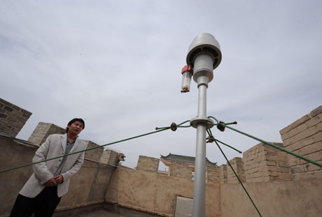 甘肅敦煌沙塵暴監(jiān)測站日前投入使用,這是中國環(huán)境監(jiān)測總站確定的80個沙塵暴監(jiān)測站點之一,不僅能夠第一時間監(jiān)測降塵、風(fēng)向、風(fēng)速、能見度等指標(biāo),還可及時準(zhǔn)確地掌握和記錄沙塵暴產(chǎn)生和發(fā)展過程及對城市空氣質(zhì)量的影響,為有效預(yù)防沙塵暴天氣提供可靠的資料。這是設(shè)在敦煌市區(qū)內(nèi)的沙塵暴監(jiān)測站點探頭。