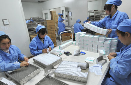 近年,蘇州市吳中區(qū)致力于打造“中國蘇州吳中藥港”。目前吳中醫(yī)藥產業(yè)基地已成為全國規(guī)模最大的OTC營養(yǎng)補充劑生產基地、最大的第三代頭孢類抗生素原料藥及中間體供應基地。圖為蘇州長征-欣凱制藥有限公司工人在包裝藥品。