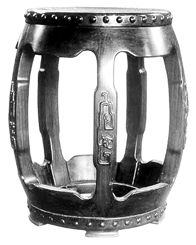 清紅木五開光夔龍紋鼓墩。 |