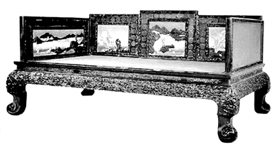 清紫檀木五屏風(fēng)圍子羅漢床。 |