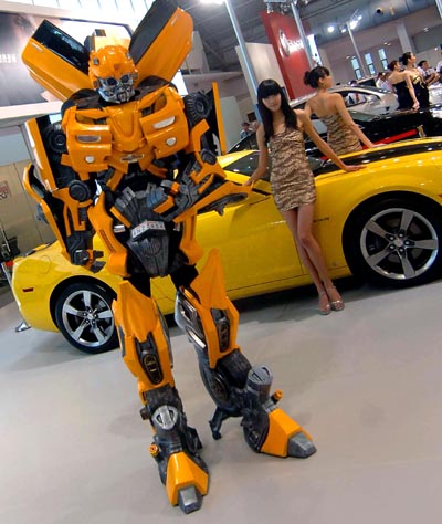正在舉行的“北京汽車(chē)嘉年華·博覽會(huì)”上,一些參展企業(yè)推出另類(lèi)“車(chē)模”,成為展會(huì)上的一道獨(dú)特風(fēng)景。 7月24日,一家參展企業(yè)的工作人員扮作“變形金剛”為展臺(tái)造勢(shì)。