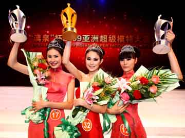 中國選手奪得亞洲超模大賽桂冠 7月26日,2009亞洲超級模特大賽在廣西南寧市落幕,中國選手張鈺(中)在來自10個國家的36名參賽選手中脫穎而出,奪得冠軍。