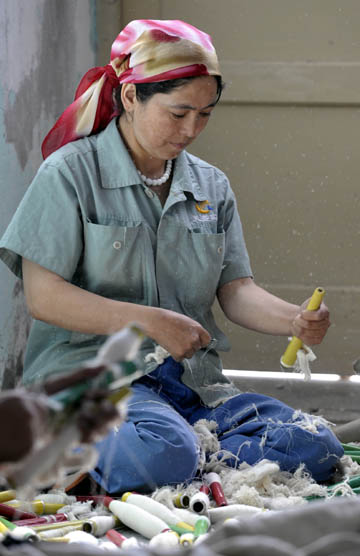 位于新疆石河子國家級經(jīng)濟(jì)技術(shù)開發(fā)區(qū)的天盛實(shí)業(yè)有限公司因地制宜,利用靠近棉花產(chǎn)地的優(yōu)勢積極發(fā)展棉紡織業(yè),現(xiàn)已形成年產(chǎn)50萬錠的生產(chǎn)規(guī)模,同時從和田、喀什、吐魯番等地大量招收少數(shù)民族員工,解決了他們的就業(yè)問題。目前公司有2200多名維吾爾族、回族、柯爾克孜族、蒙古族、哈薩克族等少數(shù)民族員工,占員工總數(shù)的2/3。 |