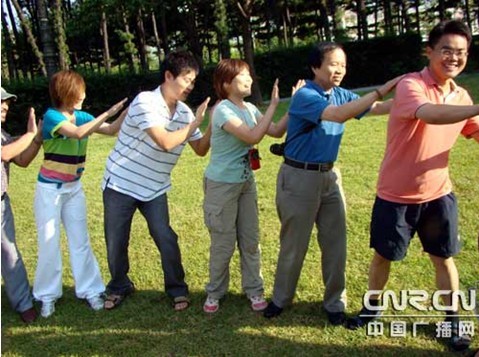 團(tuán)員們在韓國水原市孝昌公園開展拓展活動