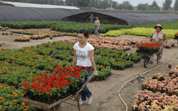 河北省廊坊市廣陽區(qū)充分發(fā)揮比鄰北京的區(qū)位優(yōu)勢,大力發(fā)展包括花卉產(chǎn)業(yè)在內(nèi)的特色農(nóng)業(yè)。“十一”國慶節(jié)來臨之際,廣陽區(qū)生產(chǎn)的花卉產(chǎn)品大部分銷往北京。新華社發(fā)