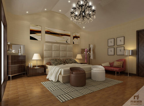 主臥室運(yùn)用了一整面墻的米色壁紙,給人溫馨的感覺(jué),這也正是臥室要達(dá)到最佳效果。