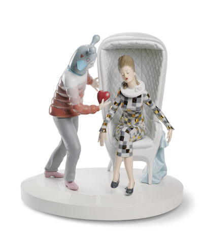 雅致新作Lladró夢幻系列之魔法時刻集夢幻與現(xiàn)實感于一身,詮釋了最坦率真摯的愛情姿態(tài)。同樣以JaimeHayón設(shè)計生涯中最具代表性的設(shè)計元素——Showtime扶手椅作為創(chuàng)作基礎(chǔ)。這款作品的設(shè)計非常精妙,一位曼妙的女郎坐在扶手椅上,愛情魔法師為了向女郎表達自己的愛意,將自己的心作為禮物獻給她。這件作品是整個Fantasy夢幻創(chuàng)品系列中的重點之作,完美地結(jié)合了Lladró與JaimeHayón的藝術(shù)風(fēng)格。 |