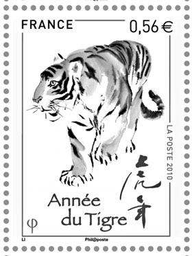 法國郵政總局發(fā)行的虎年生肖紀念郵票。新華社/發(fā)