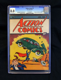 穿藍(lán)色緊身衣、披紅色斗篷的“超人”隨1938年第一期《動作漫畫》上市而“誕生”!秳幼髀嫛穭(chuàng)刊號面世時(shí)售價(jià)10美分,現(xiàn)階段大約100本留存于世。