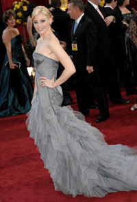 拋開(kāi)第一印象,挑剔的評(píng)論者們便開(kāi)始不厭其煩地對(duì)比各禮服間的亮點(diǎn)。較之以往,今年設(shè)計(jì)師們更為注重對(duì)細(xì)節(jié)的打造。 對(duì)珠片等閃亮飾物的大面積運(yùn)用似乎是不少女星此次紅毯的共同偏好?仿 さ蟻喥澮砸簧砹疗瑝嬶椀膴W斯卡·德拉倫塔禮服出席,星星一般的碎鉆從上至下、由密到疏地灑落在香檳色的裹胸長(zhǎng)裙上,大面積的璀璨感讓她也突破了自己這些年來(lái)在紅毯上的平淡表現(xiàn),成功博得了媒體一邊倒的贊譽(yù)。無(wú)獨(dú)有偶,作為為數(shù)不多選擇普拉達(dá)2009年早秋系列的女星,凱瑞·穆里根的黑色小禮服也全因胸前嵌有類(lèi)似排列感的黑色水晶而勝出。初次登上奧斯卡紅毯的少女歌手麥莉·賽勒斯也在腰際間運(yùn)用了大量珠片裝飾,上身的剪裁則頗能體現(xiàn)今年內(nèi)衣外穿的潮流。 而立體緞面花朵以及夸張的滾邊也是本次紅毯上頻頻亮相的設(shè)計(jì)細(xì)節(jié)。其中,珍妮佛·洛佩茲就靠阿瑪尼2010春季高級(jí)定制系列中一款不對(duì)稱(chēng)滾邊禮服成功彌補(bǔ)了自己臀部線條過(guò)粗的缺陷。 然而,同樣的理念卻有可能帶來(lái)截然相反的效果。薇拉·法米加一身艷玫瑰粉色布滿大荷葉裝飾的瑪切薩禮服就讓人大跌眼鏡,有網(wǎng)友甚至尖銳地點(diǎn)評(píng)“如此的款式即便是在街邊的婚紗店櫥窗里也絕不會(huì)受歡迎”。或許,知道運(yùn)用潮流元素是件值得鼓勵(lì)的事,但如果沒(méi)有絕對(duì)的把握和外形優(yōu)勢(shì),選擇簡(jiǎn)單經(jīng)典的款式也不失為一種成功。