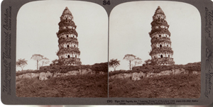 蘇州的“斜塔”———虎丘塔全景。銀鹽照片,1900年。 |