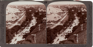 向南眺望法國(guó)租界和內(nèi)城,上海。銀鹽照片,1900年。 |
