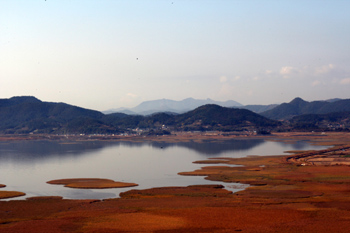 清晨,微曦初露。踏上蜿蜒伸展的“無霧橋”,便置身于一望無際的黃色蘆葦叢中。放眼望去,綿長的海岸線環(huán)抱著大片的灘涂和茂盛的蘆葦。四周一片靜謐,蘆葦叢中隱約可見羽毛灰黑、頸部雪白的珍稀鳥類白頭鶴,時而悠閑踱步,時而展翅高飛;遠處,鳥群不時騰空而起,變換著“一”字和“V”字形隊伍,翱翔盤旋! ∪绱藟艋冒愕膱鼍,在韓劇中經(jīng)常出現(xiàn)。隨著“韓流”之風(fēng)日盛,越來越多的中國游客來到韓國,試圖尋找這種美景。首都首爾、韓劇《冬日戀歌》、《大長今》的拍攝地南怡島、濟州島等地是大多數(shù)人的選擇。然而,當(dāng)筆者來到位于朝鮮半島南端的順天,才驚覺,要感受韓國的天然美,不到順天實在是“遺珠之憾”。 順天,顧名思義,就是“順應(yīng)天意”。這座位于韓國全羅南道的小城,人口不到30萬,森林覆蓋率高達69.6%,是個名副其實的生態(tài)之都。其境內(nèi)被稱為“生命漩渦”和“地球之肺”的順天灣濕地保護區(qū),在韓國首屈一指。長期以來,這里沒有人類涉足,歷經(jīng)數(shù)千年歲月形成的泥潭在蘆葦?shù)奶烊粌艋饔孟聸]有絲毫微生物腐敗的異味。由于遠離污染,鹽堿地植被繁茂。白頭鶴、黑頂海鷗、白鶴、黑臉琵鷺和黃嘴白鷺等多種世界珍稀鳥類在此越冬和棲息——順天灣是世界濕地中珍稀鳥類品種最多的地方之一。無數(shù)浮游生物、魚類和蟹、貝、螺等底棲生物生活在水中,為在此停留棲息的鳥兒提供了充足的食物。每年都有150多種鳥類在這里繁殖越冬。 一走進順天最著名的順天灣自然生態(tài)公園的大門,便仿佛從喧囂的都市,進入了寧靜的世外桃源。這里清新的空氣、遼闊的灘涂和隨風(fēng)搖曳的蘆葦,仿佛在向游客訴說順天灣的天然之美。 順天灣蘆葦叢的總面積約46萬平方米,是韓國國內(nèi)最大的蘆葦叢。走近看,還有一叢叢的小花和灘涂上大批的小螃蟹。這片蘆葦叢,春夏秋冬各有風(fēng)韻,讓你可以體會不同的景致,無論是春的嫩綠,夏的蔥翠,秋的金黃,還是冬的蕭瑟,看著大片的蘆葦在海風(fēng)吹動下,浪潮般翻涌,任誰都會如癡如醉。 沿著生態(tài)公園的山路上行,大約1個小時,就可以到達龍山展望臺。山路比較陡,讓人走得氣喘吁吁,但一踏上高高的展望臺,順天灣美麗的S形水路和圓形蘆葦林盡收眼底,所有的勞累立時煙消云散。當(dāng)?shù)赜芯湓捊凶觥安坏烬埳秸雇_,別說已看順天灣”,這里的確是觀看整個順天灣的最佳地點。秋冬的清晨,這里適合觀看多種鳥類,而傍晚時分,這里更是觀賞落日的絕佳場所。這片以灘涂為背景的夕陽景觀被韓國專業(yè)攝影團體評選為“十大落日美景”之一。 迎著習(xí)習(xí)涼風(fēng),欣賞著怡人的濕地美景,工作和生活的壓力悄然遠離,心情平靜澄澈,恍如出世。 出了公園,我品嘗了這里有著悠久歷史的“韓定食”。順天所在的全羅南道是韓國飲食最著名的地區(qū),以口味清淡的小菜和新鮮海產(chǎn)而聞名。咸淡適中的泡菜、爽口微辣的魚湯,尤其是最最有名的“三合”——辣白菜、五花肉和熏洪魚包在一起吃的一道韓式高級菜——非常值得一試。 離開順天灣,帶著寧謐的心境和齒頰間的余香,戀戀不舍地坐上大巴回首爾。一路上,車里靜悄悄的,也許是大家還在沉浸在順天灣的美麗中吧。短短一天,從喧囂都市到世外桃源,如同經(jīng)歷了一場天然的洗禮,令人回味無窮。