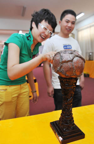 在銀川市舉辦的第八屆中國銀川賞石旅游節(jié)上,一件酷似“大力神杯”的戈壁奇石驚艷亮相。新華社記者 王鵬/攝 |