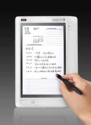 ▲與天氣同樣火熱的平板電腦市場近日又迎來了一位有力的競爭者——針對中國商政精英的移動辦公需求而研發(fā)的E人E本T2新品。T2以傳統(tǒng)記事本和書籍為設計靈感,典雅而精致,硬件側邊的斜坡式設計順應了人體手寫輸入過程中的習慣。T2機身厚1.1厘米,重量僅440克。讓人驚喜的是,T2擁有一秒開關機、一鍵返回主界面等人性化設置,下方設有返回鍵和菜單鍵,加上右側的書頁式設計,不僅適合閱讀,且手寫平滑,上網體驗也更加流暢。