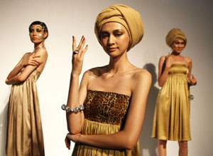 日前,世界首個鉆石品牌Forevermark(TM)永恒印記“SHINING LIGHT”鉆飾設(shè)計大賽獲獎作品全球首展在北京中央美術(shù)學(xué)院舉辦。30位來自非洲南部的年輕設(shè)計師以25000顆總重達(dá)630克拉鉆石設(shè)計的美鉆飾品由模特們佩戴向觀眾展示。圖為模特在展示鉆石飾品。